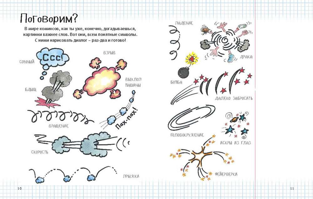 В этой книжке мы научимся рисовать и эмоции, и звуки, и даже всякий разный шум.