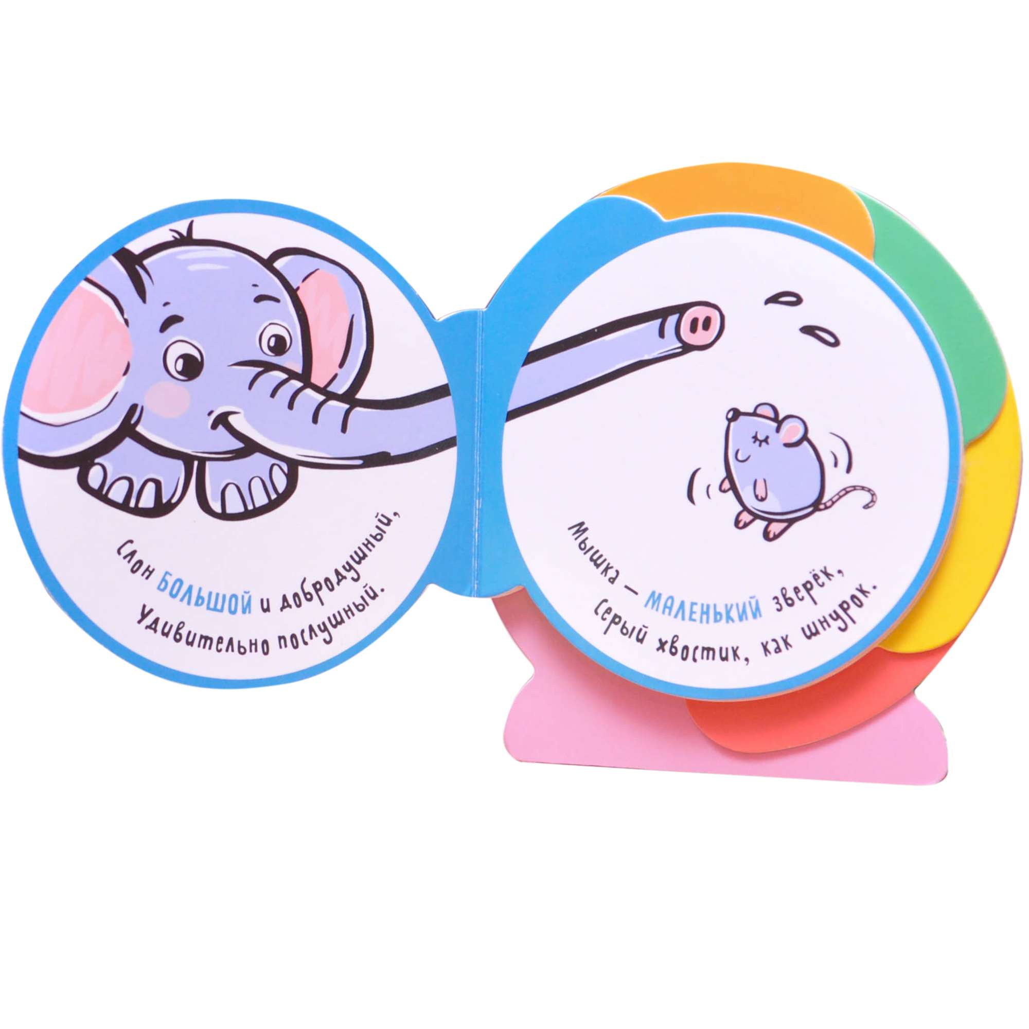 Миниатюрная книга «Антонимы» серии «Книжки-улитки» идеально подходит для развития самых маленьких детей.