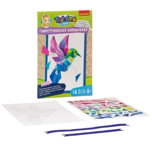 Самое приятное, что клей не понадобится - каждый фрагмент геометрической аппликации самоклеящийся и пронумерован в соответствии с деталью на картинке.