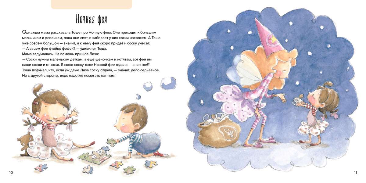 Тоша уже большой — ему пора отказаться от соски… Убедить его в этом будет трудновато, вот почему ему сказали, что соску заберёт Ночная фея, как это случилось с Лёвой и Лизой много лет назад. А может быть Тоша захочет отдать свою соску котятам?