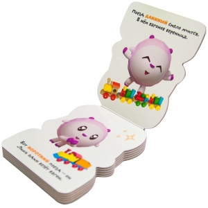 Книжка из плотного картона имеет небольшой формат – ее легко держать и листать маленькими ручками и удобно брать с собой в поездку, гости, поликлинику и на прогулку.