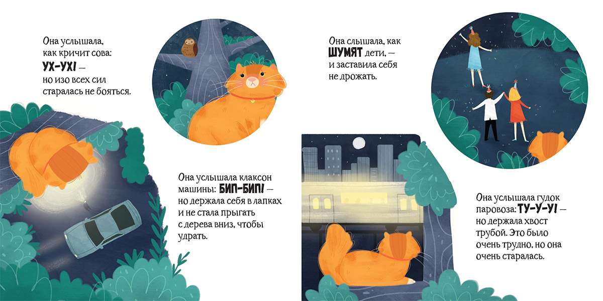 Коты — что делать малышке? Она забралась на самое высокое дерево в парке (и крепко держалась, чтобы не упасть!), услышала уханье совы и крики детей (и не задрожала!) — и тут… ах, даже не верится, что у этой сказки счастливый конец, но он очень, очень счастливый! Так что же произошло?