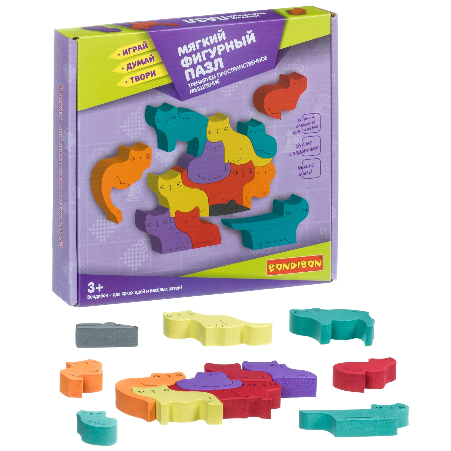 Мягкий фигурный пазл Bondibon Котики Пространственное мышление - это набор из полюбившейся серии Играй Думай Твори, дополняющей серию Играй Думай учись.