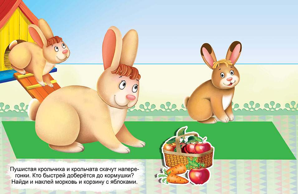 а книжном развороте изображена обстановка детской комнаты, а специальная вставка содержит красочные и забавные многоразовые наклейки с изображением домашних животных и любимых игрушек.