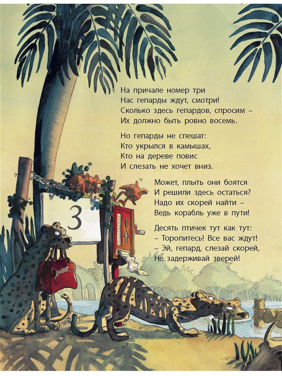 Мчит кораблик по волне к удивительной стране. Его ждут увлекательные приключения и необычные пассажиры. Много пассажиров! На борт поднимаются грозные гепарды, весёлые обезьяны и даже гигантские змеи. Каждый мечтает отправиться в волшебную страну Шангрилу! Помоги капитану, найди и посчитай всех животных. Но будь внимателен, кто-то мог пробраться и без билета. Весёлая книжка с озорными стихами и яркими картинками помогает развивать память и внимание малышей. Для чтения взрослыми детям.
