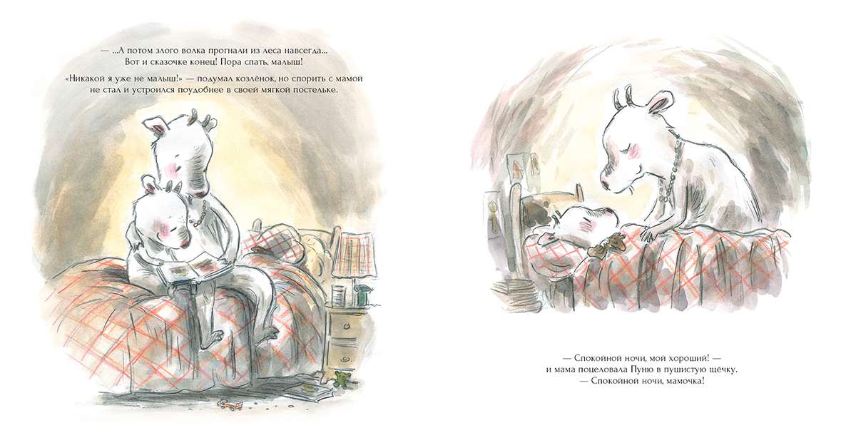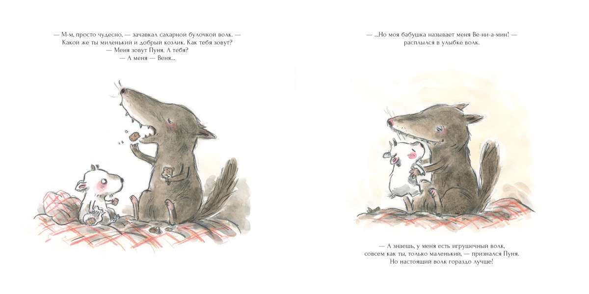 В этой истории о дружбе козлёнок Пуня и волк Вениамин вместе побеждают страхи одиночества и темноты.