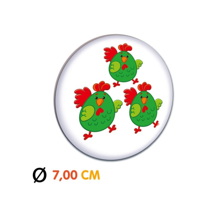 - Игровые атрибуты выполнены в виде круглых фишек с изображением разного количества цыплят одного цвета.