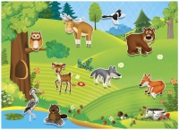 Яркая и привлекательная книжка напечатана на плотной высококачественной мелованной бумаге. На книжном развороте издания нарисована живописная лесная поляна, а специальная вставка содержит красочные и забавные многоразовые наклейки с изображением самых известных лесных животных.