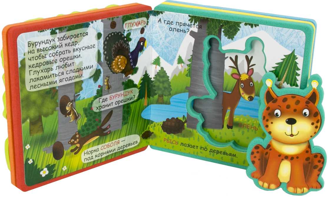 Яркая и привлекательная книжка, удобного для детских ручек формата, сделана из безопасного мягкого полимера с закругленными краями страниц. На каждом книжном развороте внимание Вашего малыша привлекут напечатанные на качественной мелованной бумаге забавные изображения животных, живущих в лесу, а мягкие вкладыши-пазлы станут элементом игры и доставят ему много радости.