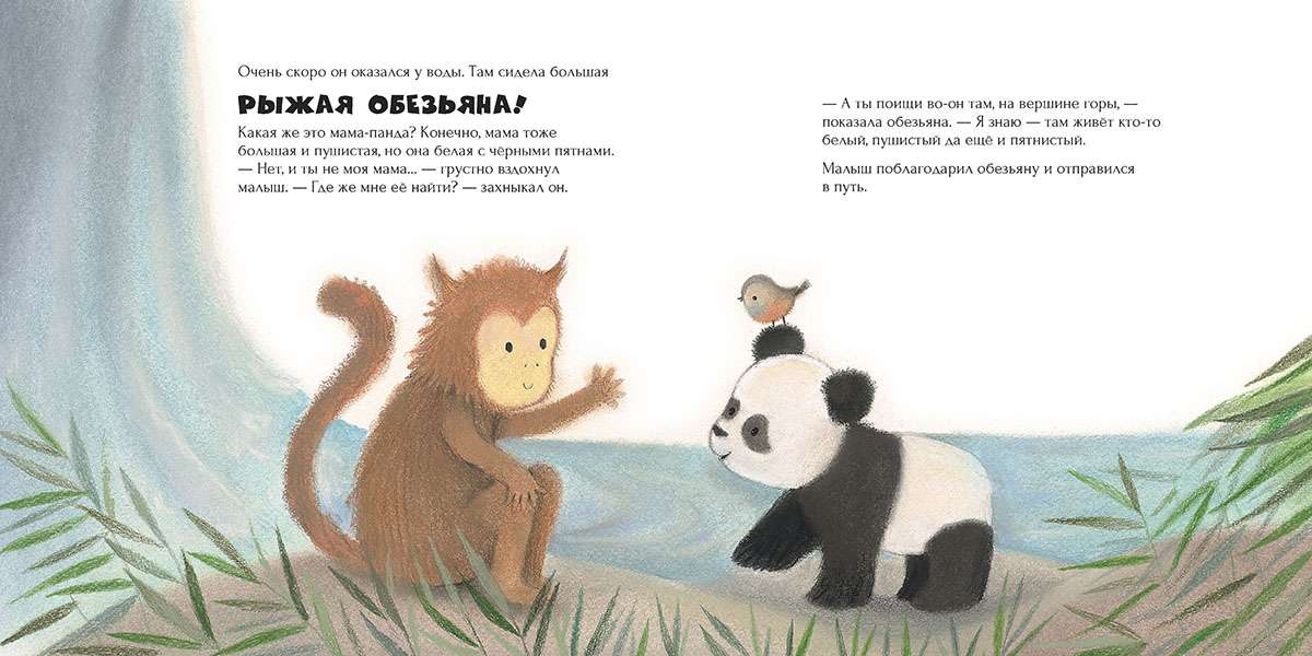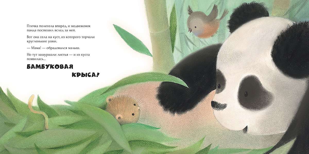 Медвежонок панда обожает гулять с мамой по самому красивому на свете бамбуковому лесу. Но однажды он отбежал от мамы слишком далеко и потерялся! Малыш отправился искать маму и встретил необычных зверей: бамбуковую крысу, белку летягу, рыжую обезьяну и красную панду. Они помогли медвежонку добрым советом — и мама нашлась! Малыш так обрадовался, что пообещал никогда больше не теряться и познакомил маму со своими новыми друзьями.