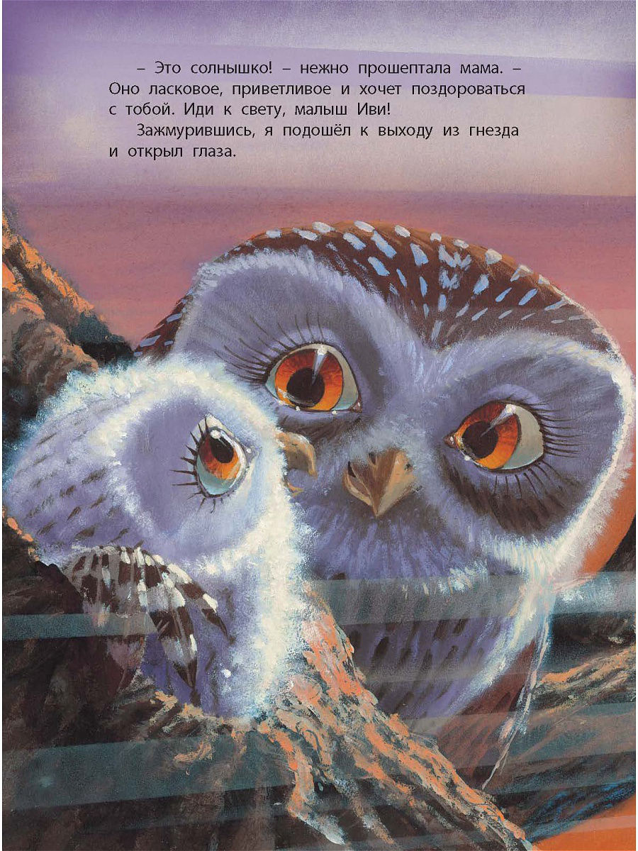 Совёнок Иви однажды выглянул из гнезда и увидел огромный и прекрасный мир. Ему не терпится познакомиться с ним поближе. Хорошо, что Мама всегда рядом, - она всему научит и всегда поможет...