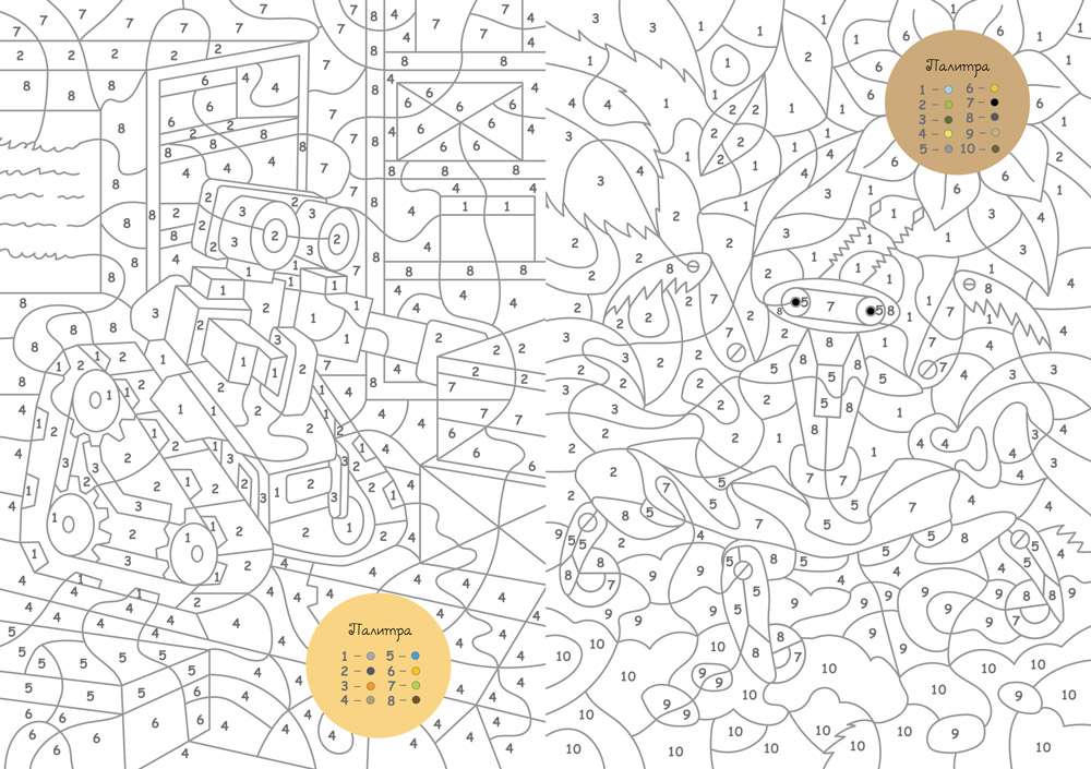 Мир техники и роботов многообразен, в нём всё сверкает, жужжит и крутится — добавь ему ярких цветов!