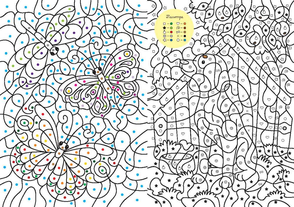 Более 30 волшебных сюжетов для раскрашивания по цветам, символам и номерам.