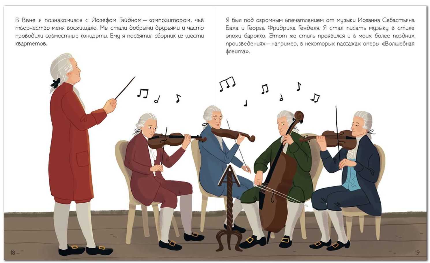 Маленький читатель сможет проследить весь жизненный путь гения – от детства одаренного ребенка до славы великого композитора, и поймет, как важно ценить каждый день и следовать за мечтой, стремясь к большему и непрерывно упражняясь в своем деле.