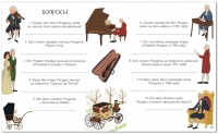 В конце книги ребенок найдет временную шкалу, которая поможет лучше запомнить основные моменты биографии Вольфганга Амадея Моцарта, а также 10 вопросов на запоминание прочитанного и ответы к ним.