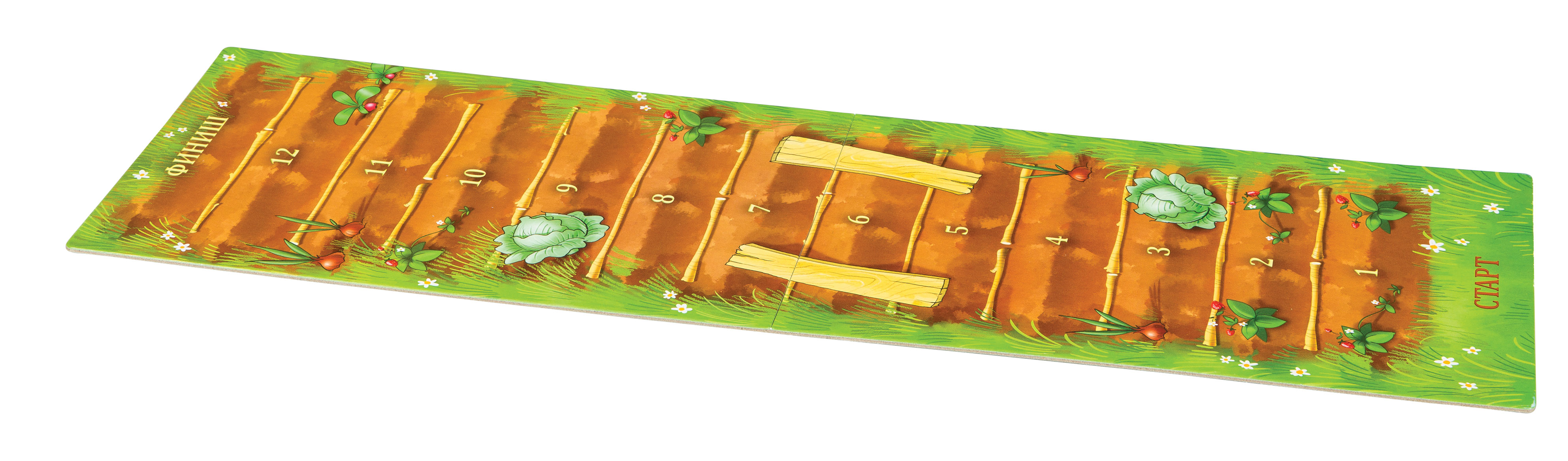 - деревянный кубик с точками от 1 до 3 и деревянная морковная грядка;
