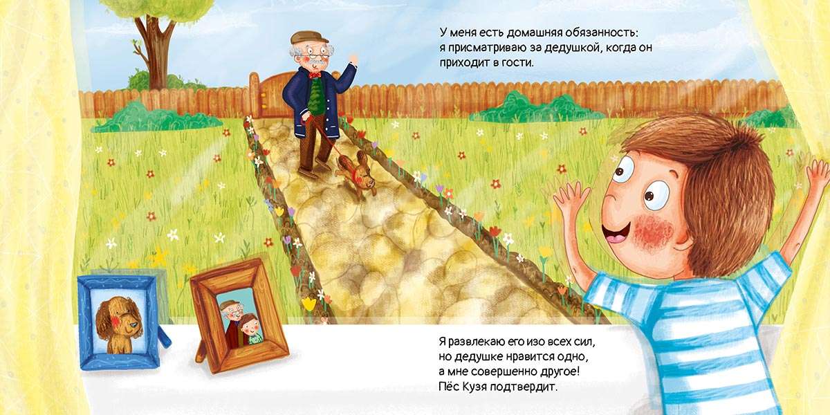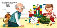 Всё-таки странные это люди — дедушки. Им нравятся абсолютно неправильные вещи: не кататься на качелях, а качать их, не прятаться, а водить, не разбирать, а строить… Они никуда не торопятся — и как им только удаётся сдерживаться! — ведь хочется добежать и дотронуться буквально до всего, что видишь! В общем, дедули — совершенно непонятный для нас, внуков, народ. Но хоть мы и смотрим на мир совсем по-разному, есть одна вещь, которую мы видим одинаково, — мы друг для друга самые дорогие люди!