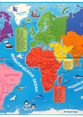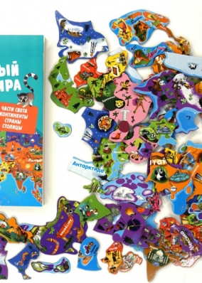 Cобери карту мира с помощью 81 магнита. Обращай внимание на цвет магнита – он должен совпадать с цветом на карте. Новых открытий!