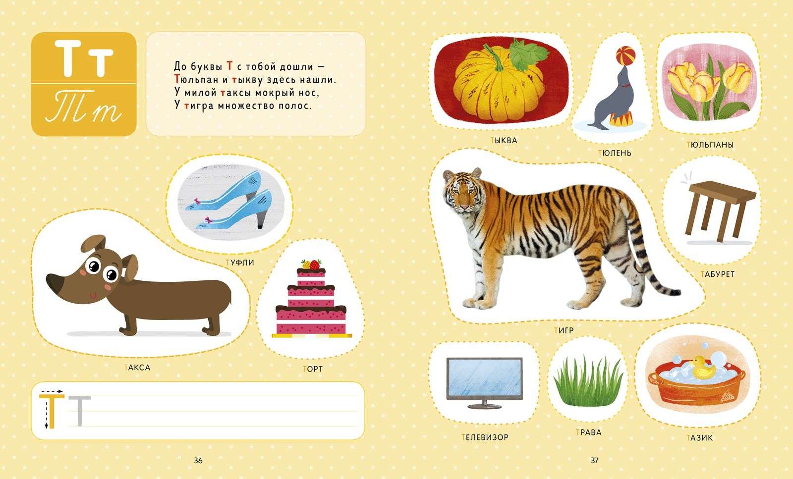 На каждой страничке — задания на знакомство с буквами. Букву ребенок научится отличать от других, правильно произносить и, наконец, писать.