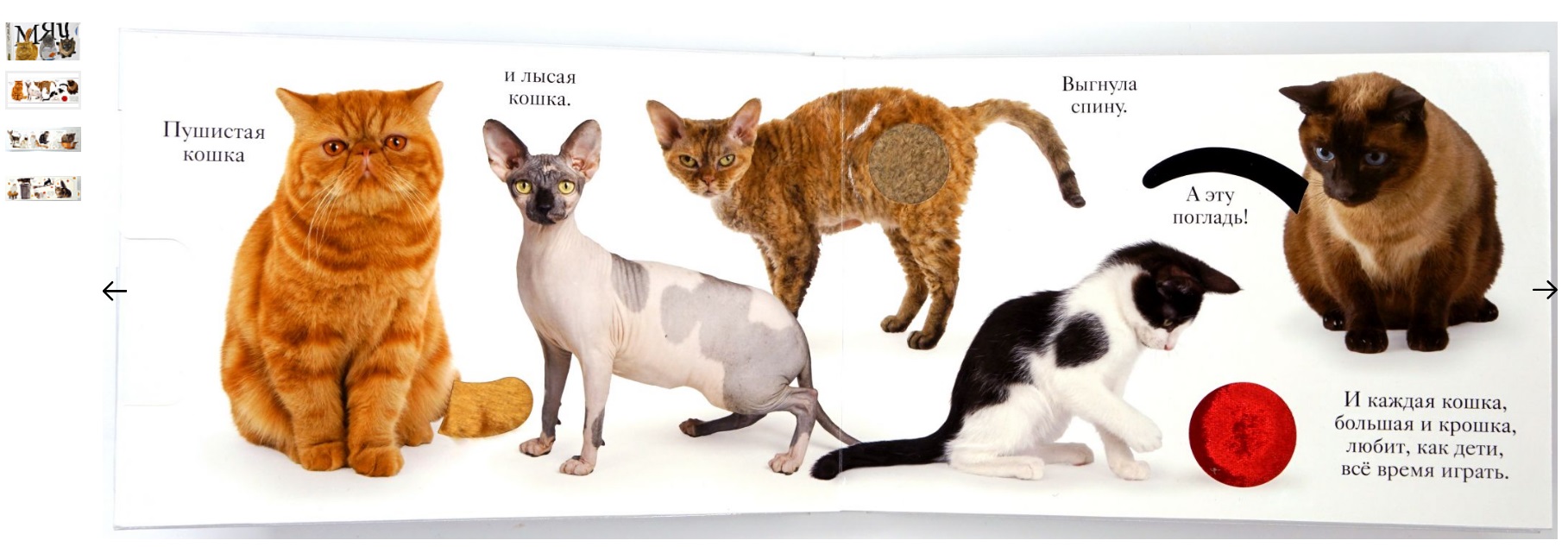 Книга «Мяу» предназначена для малышей, которые с помощью родителей осваивают этот мир. В этой книге дети могут погладить кошечек, поиграть с ними в мячик, а также узнать из остроумных стихов, почему кошки бывают такие разные.