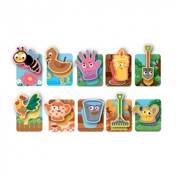 Правила игры: сначала Ваш маленький игрок рассмотрит предметы из коробки, затем предложите подобрать необходимый фон под предмет, например, пчелка сидит на цветке, утенок плавает в озере. Когда ребенок уже достаточно изучит все предметы, предложите малышу закрыть глаза и узнать объект по форме, не подглядывая.