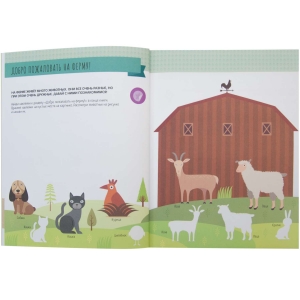 Красочная книга-активити с наклейками «На ферме» предназначена для развития логического мышления и познавательных навыков в игровой форме.