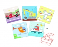Набор для трафаретов Транспорт от французского производителя Djeco состоит из пяти трафаретов с изображением разных транспортных средств - вертолета, экскаватора, самолета, корабля и гоночной машины.