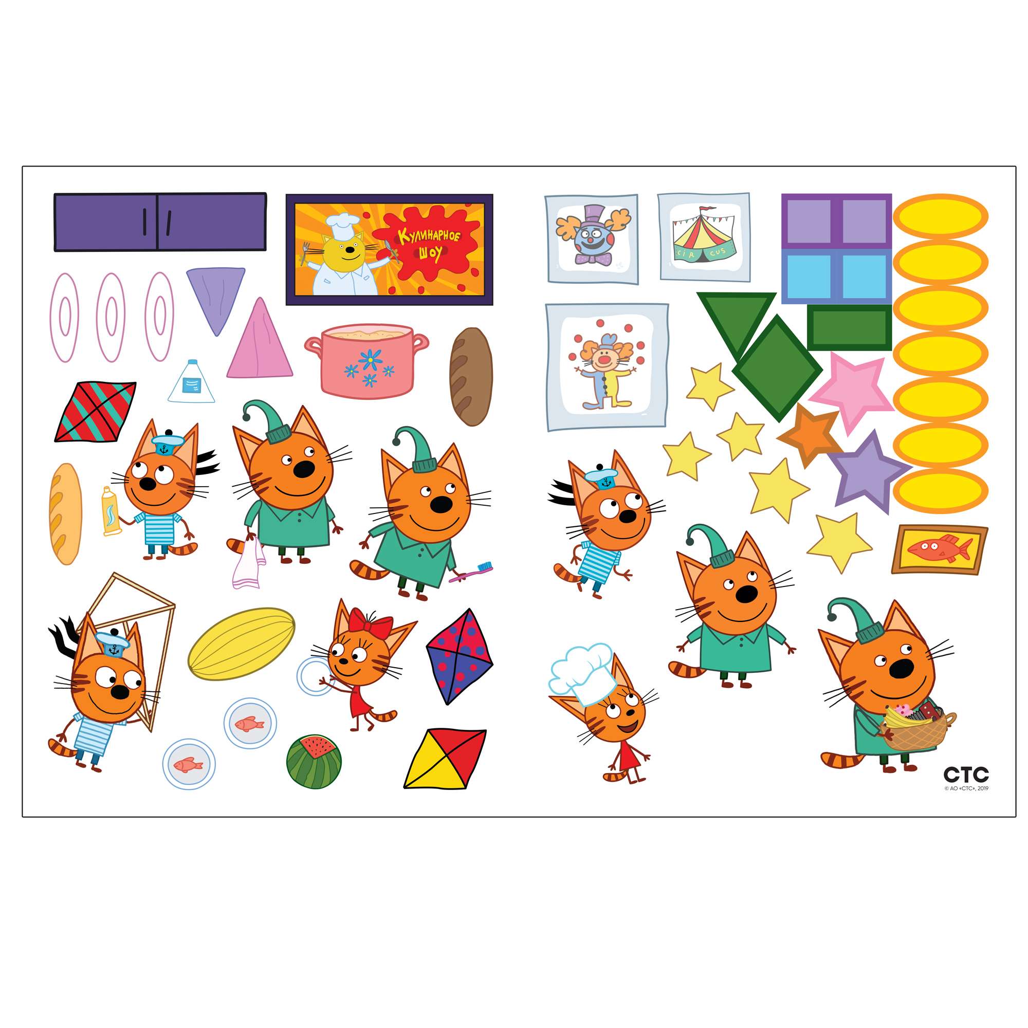 Наш день (Три кота. Развивающие наклейки), книга с многоразовыми наклейками