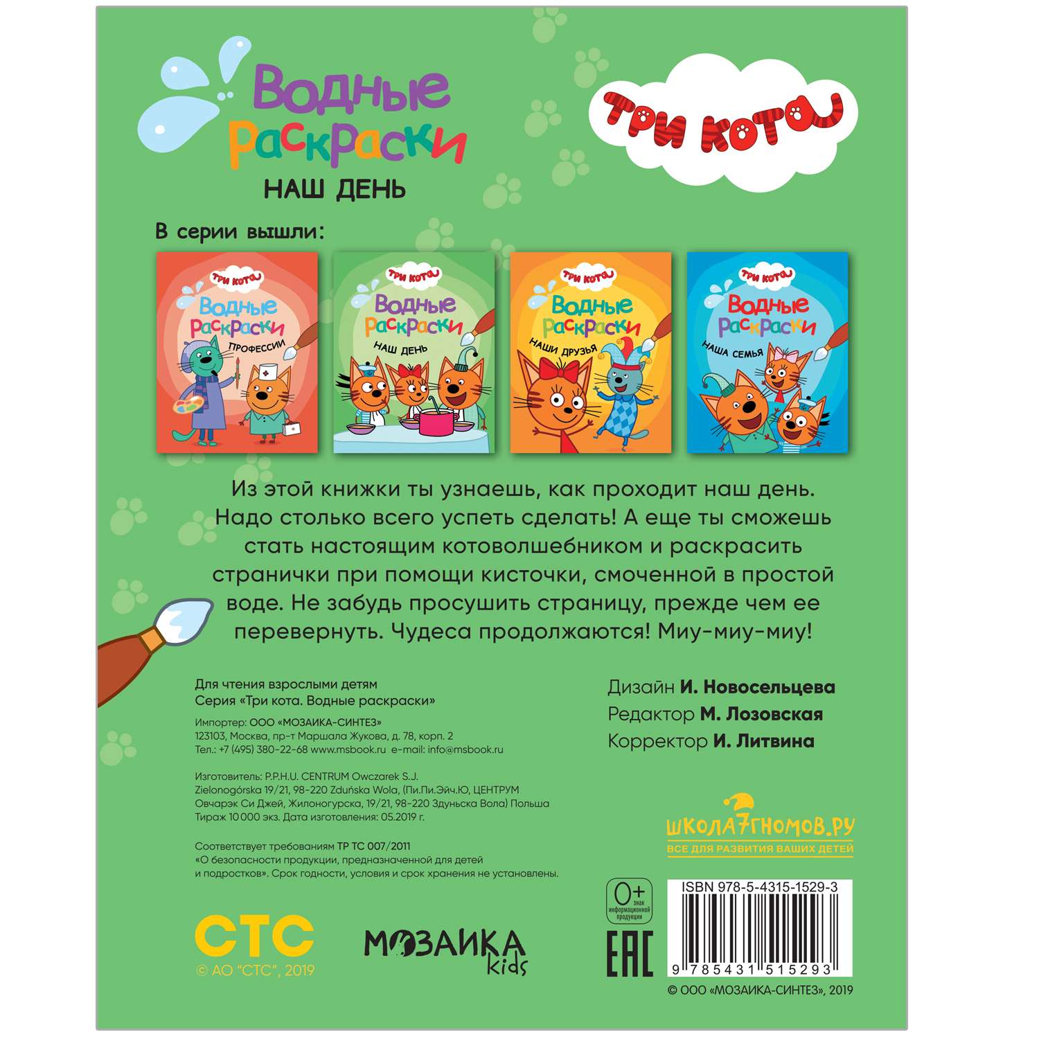 С необычной раскраской «Наш день» ребенок почувствует себя настоящим котоволшебником. Чтобы «оживить» странички, ему не нужны краски или фломастеры - достаточно просто раскрасить их мокрой кисточкой.