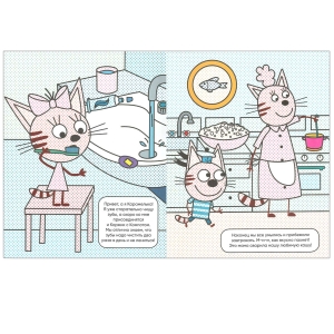 Забавные иллюстрации с героями любимого мультсериала расскажут маленькому художнику об одном дне из жизни Компота, Коржика и Карамельки.