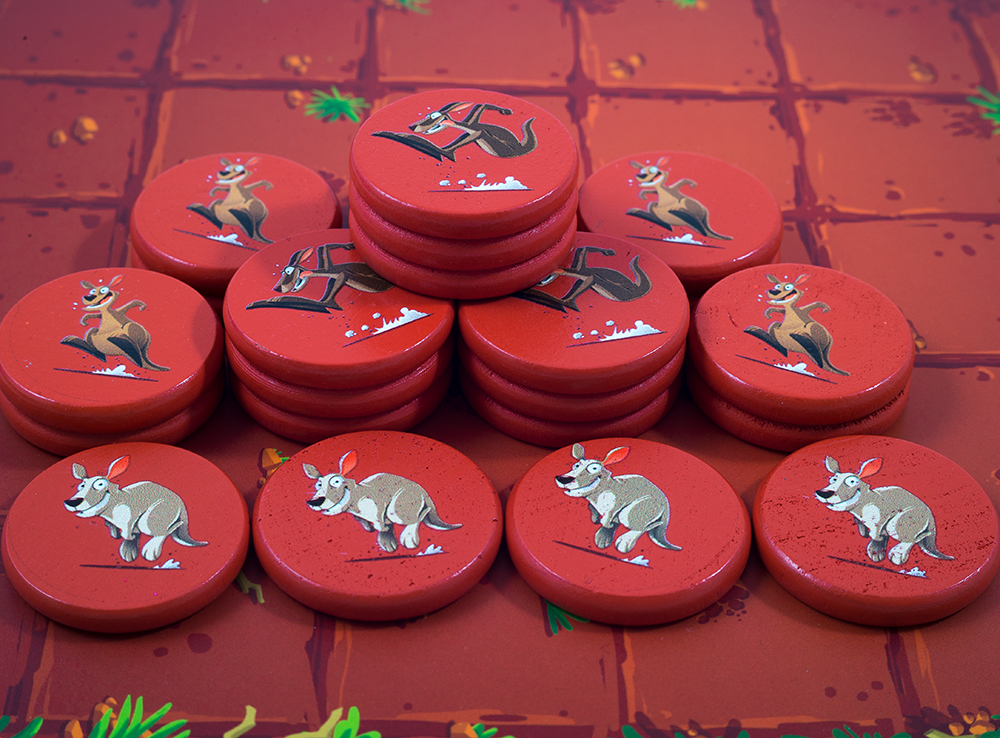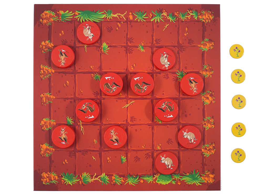 Задача игроков – трижды провести кенгуру за противоположный край поля и собрать три жетона люцерны. В вашей команде есть 6 лихих кенгуру, которые с помощью прыжков перемещаются на разные расстояния. Проявите все свои тренерские амбиции: обдумывайте ходы и оценивайте возможности ваших спортсменов-кенгуру, прыгайте быстрее и дальше противника, не стесняйтесь даже командовать кенгуру из другой команды, в общем – перепрыгайте всех!