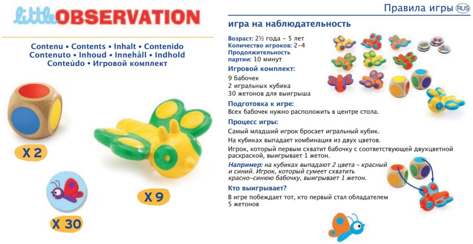 Игра Наблюдательность подойдет для самых маленьких игроков. Она научит детей следовать правилам, поможет повторить цвета.