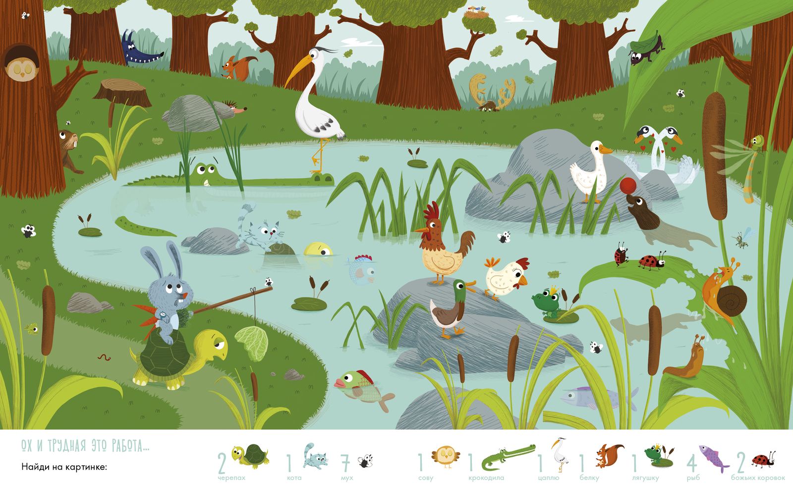 На каждом развороте — множество удивительных животных в разных средах обитания. Найдите их всех! Книжку приятно брать в руки: странички плотные, а иллюстрации красочные и яркие. Вы и сами будете с удовольствием рассматривать книгу. Ведь самое важное — ваши совместные занятия с малышом.