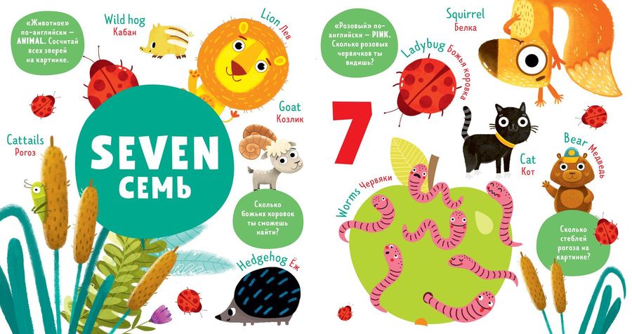 «Numbers. Цифры» — книжка-игра с веселыми заданиями, которая идеально подходит для первого знакомства с английским языком. С ее помощью малыш выучит новые слова, запомнит названия цветов и легко научится считать до 10 на русском и английском языках.Книга проверена методистами. По ней родители смогут заниматься с малышом самостоятельно, даже если сами не очень уверенно владеют английским языком. Отсканировав QR-код на обороте книги, вы получите доступ к бесплатному уроку по материалам книги от школы английского языка Skyeng.