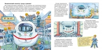 На каждом книжном развороте внимание Вашего малыша привлекут красочные тщательно прорисованные сюжетные изображения всех этапов, связанных с путешествием на поезде. Они расскажут не только об устройстве вокзала, железнодорожных путей и скоростного пассажирского поезда, но и о подготовке подвижного состава к поездке, о многочисленных видах профессий на железной дороге, об особенностях ремонта и технического обслуживания грузовых и пассажирских перевозок, о правилах поведения во время поездки и, конечно же, о самом путешествии.