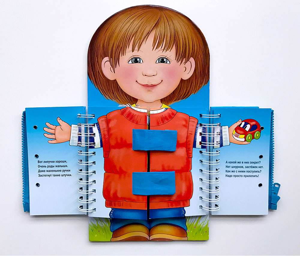 Книжка-тренажер. Поможет ребенку развить мелкую моторику, речевые навыки и самостоятельность.