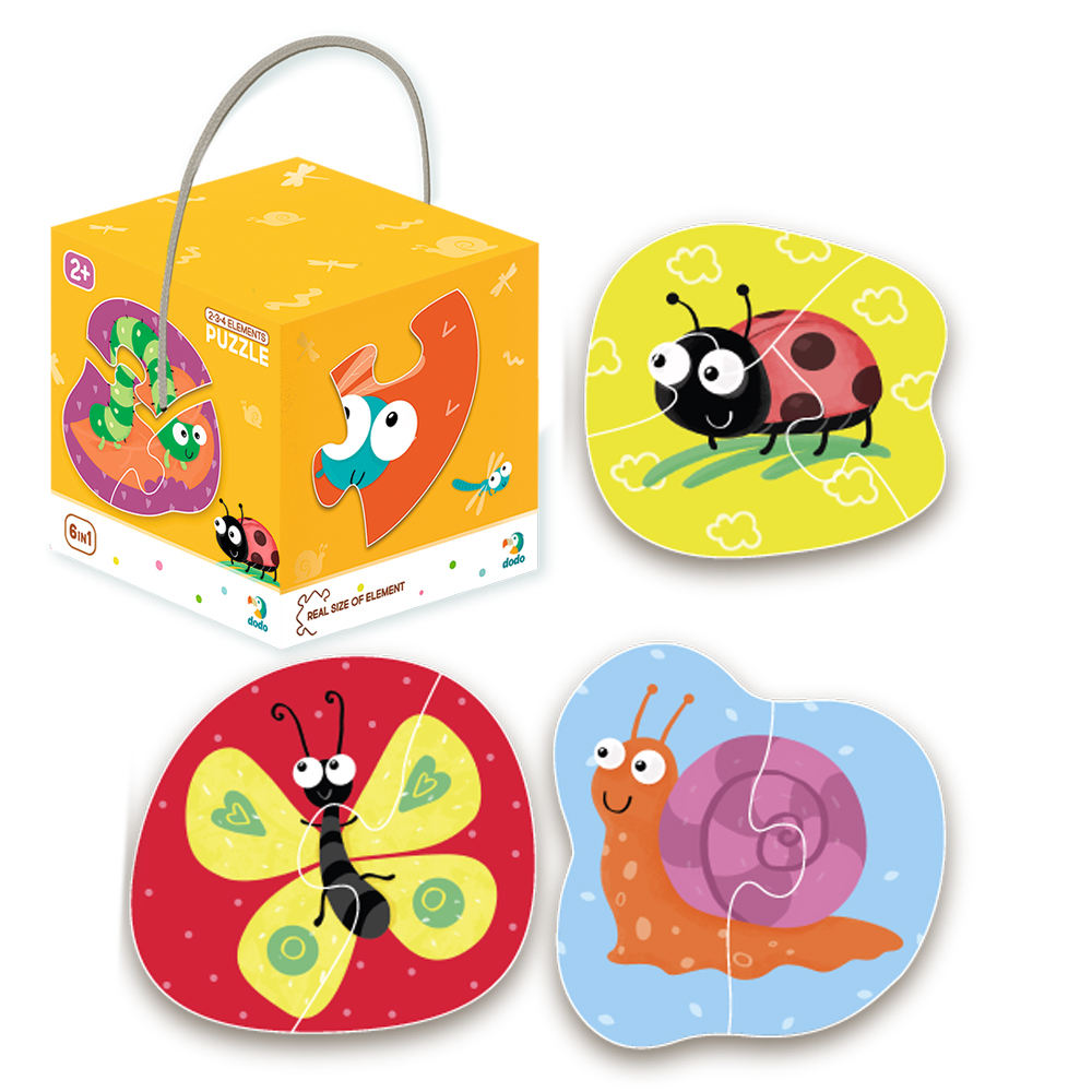 Пазл 2-3-4 элемента "Насекомые" представляет собой фигурные пазлы, на которых изображены животные леса. Пазлы состоят из разного количества элементов - 2, 3 и 4. В процессе их составления у малыша будет развиваться образное и логическое мышление, восприятие отдельных и целых элементов, мелкая моторика рук.