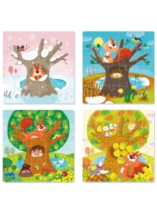 Пазл 4в1 Времена года представляет собой четыре отдельные картинки, которые показывают основные отличительные особенности каждого времени года.