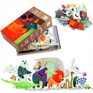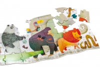 Детям предстоит собрать вместе все детали пазла, чтобы в результате получилась красивая большая картина длиной 1,33 метра. Собирая пазл Djeco, ребёнок постепенно постигает принцип сложения целого из кусочков, делая очередное маленькое открытие.