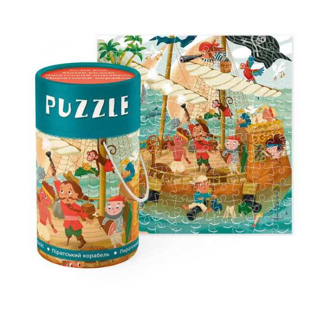 Пазл понравится Вашему озорнику, мечтающему о морских приключениях. Элементы пазла находятся в компактном тубусе, в котором их удобно хранить. В процессе сборки головоломки ребенок поучит картину с изображением пиратского корабля, которое можно склеить и использовать в качестве украшения детской комнаты.