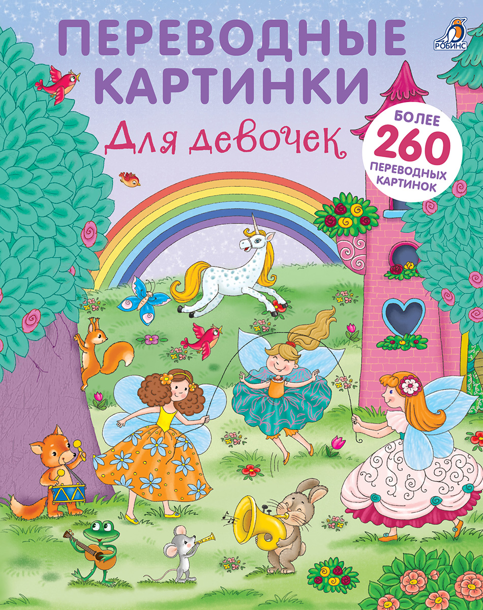 - 9 ярких тематических разворотов с интересными сюжетами и более 260 переводных картинок.