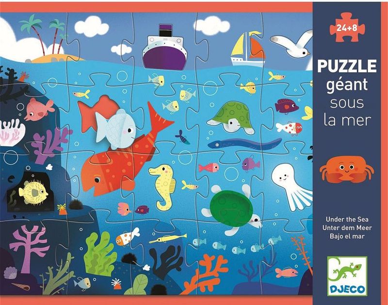Пазл-гигант Подводный мир от французского производителя Djeco (Джеко) - может стать самым первым и самым любимым пазлом Вашего малыша. Детям предстоит собрать вместе все детали пазла, чтобы в результате получилась красивая большая картина размером 70х50 см с изображением подводного мира.