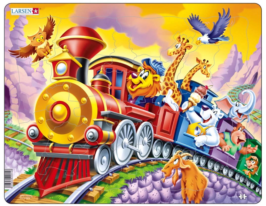 Пазл Larsen "Поезд с цирком" изображает поезд с веселыми животными. Собрав эту картинку, малыш будет с удовольствие рассматривать забавных зверушек.