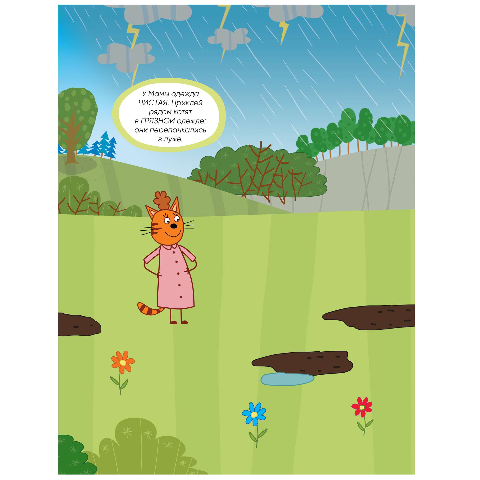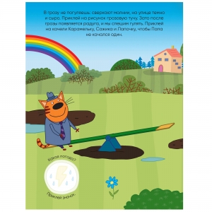 Благодаря удобному формату заниматься по книге «Погода» из серии «Три кота. Развивающие наклейки» можно где угодно: дома, в поездке, гостях и на прогулке.