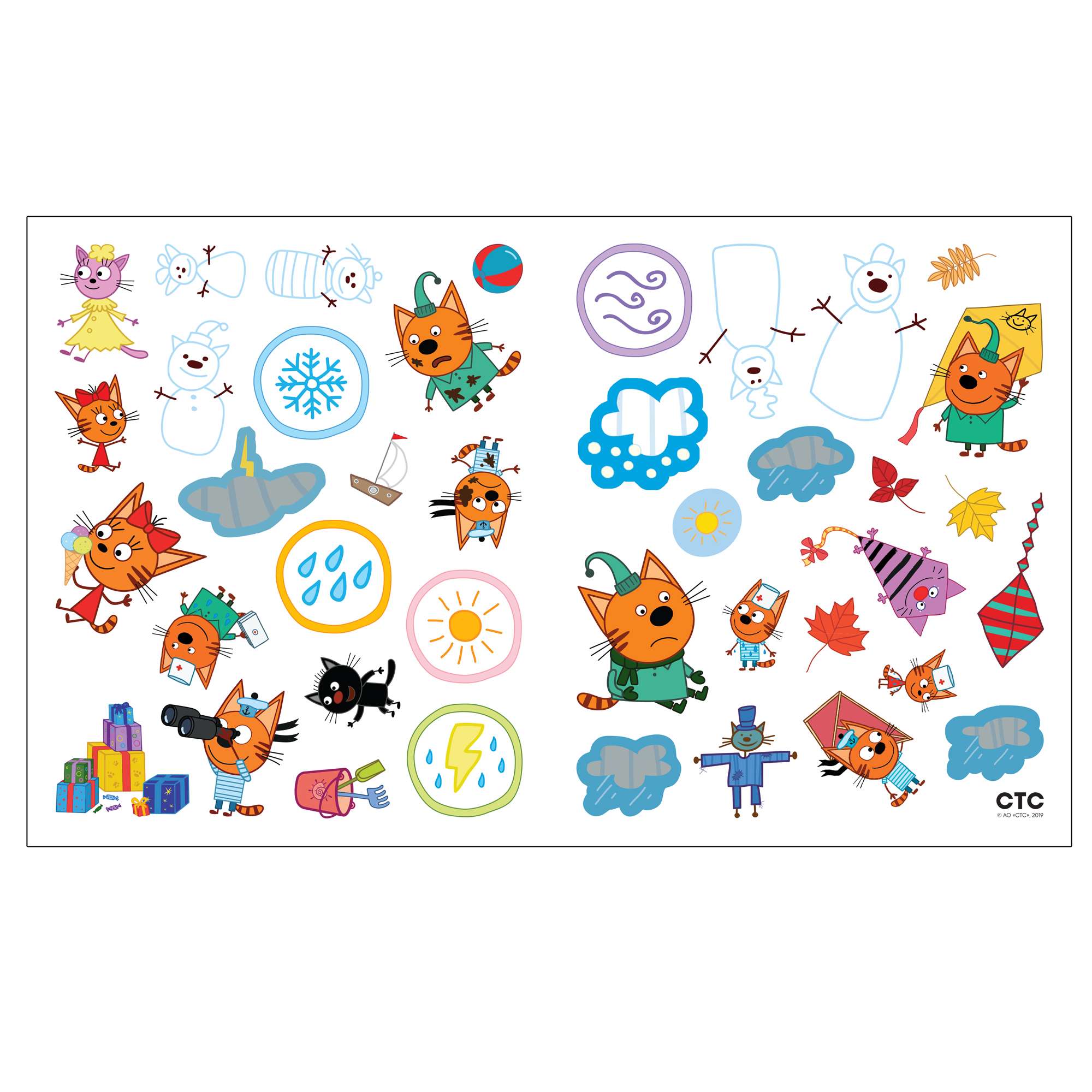 Погода (Три кота. Развивающие наклейки), книга с многоразовыми наклейками