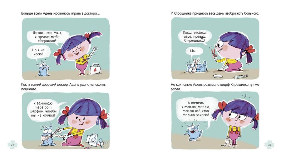 Любимые всеми детьми комиксы о жизни и приключениях маленькой непоседы Адель и ее славного друга Страшилки. Озорные герои с легкостью научат ребенка читать, не капризничать и не бояться долгих скучных занятий или поездок.