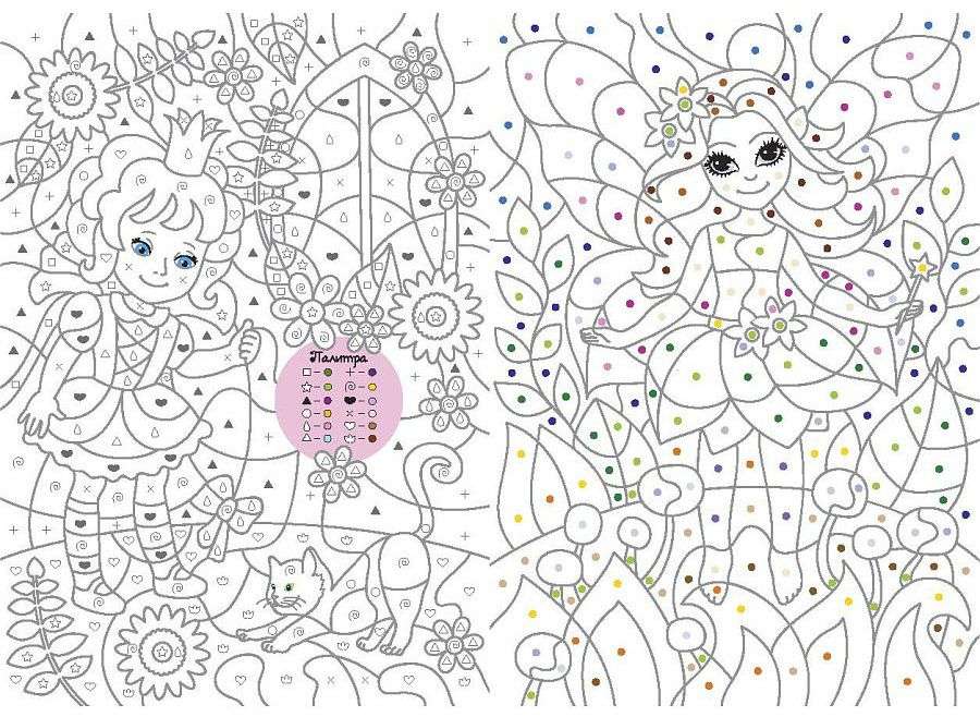 В этой книге вы найдете и сможете раскрасить прекрасных принцесс, принцев, драконов, единорогов! А в садах около королевских замков вы увидите восхитительных легких фей в венках из цветов и волшебных птичек.