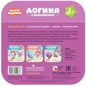 В книге малыша ждут герои любимого мультсериала – очаровательные Малышарики - и множество головоломок. Его задача – выявить в каждом ряду закономерность и продолжить ее с помощью ярких наклеек. Такие занятия способствуют развитию памяти, кругозора, мелкой моторики, логики и мышления, учат находить и принимать решения.