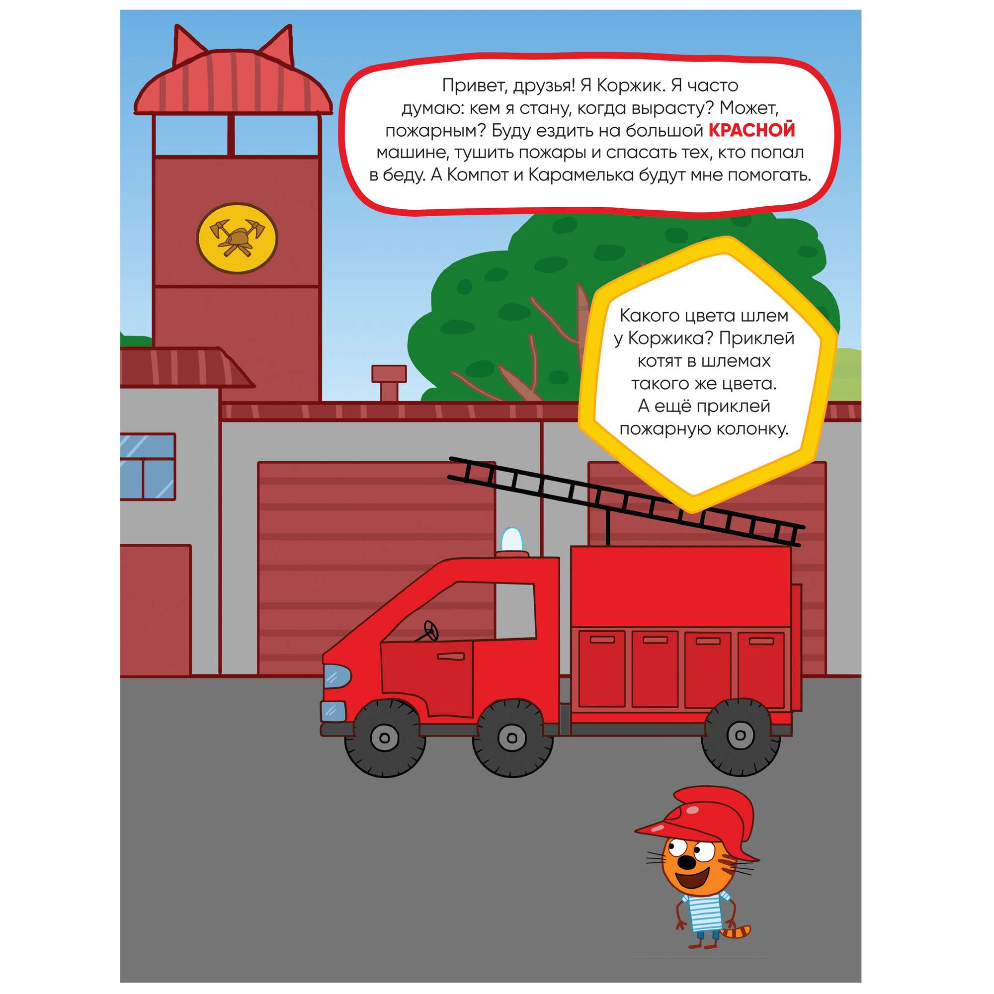 Благодаря удобному формату заниматься по книге «Профессии» из серии «Три кота. Развивающие наклейки» можно где угодно: дома, в поездке, гостях и на прогулке.