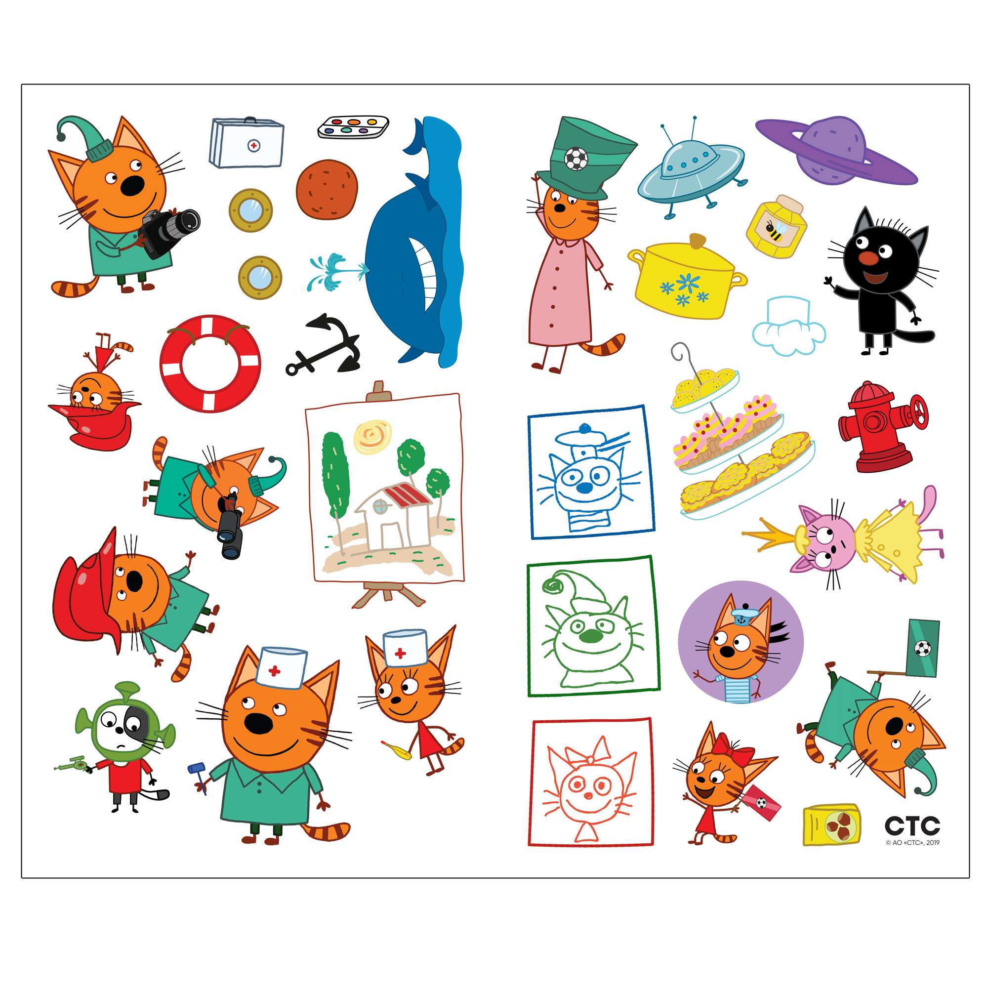 Миу-миу-миу! А ваш ребенок любит мультсериал «Три кота»? Тогда ему обязательно понравится эта красочная книжка с многоразовыми наклейками, рассказывающая о профессиях.